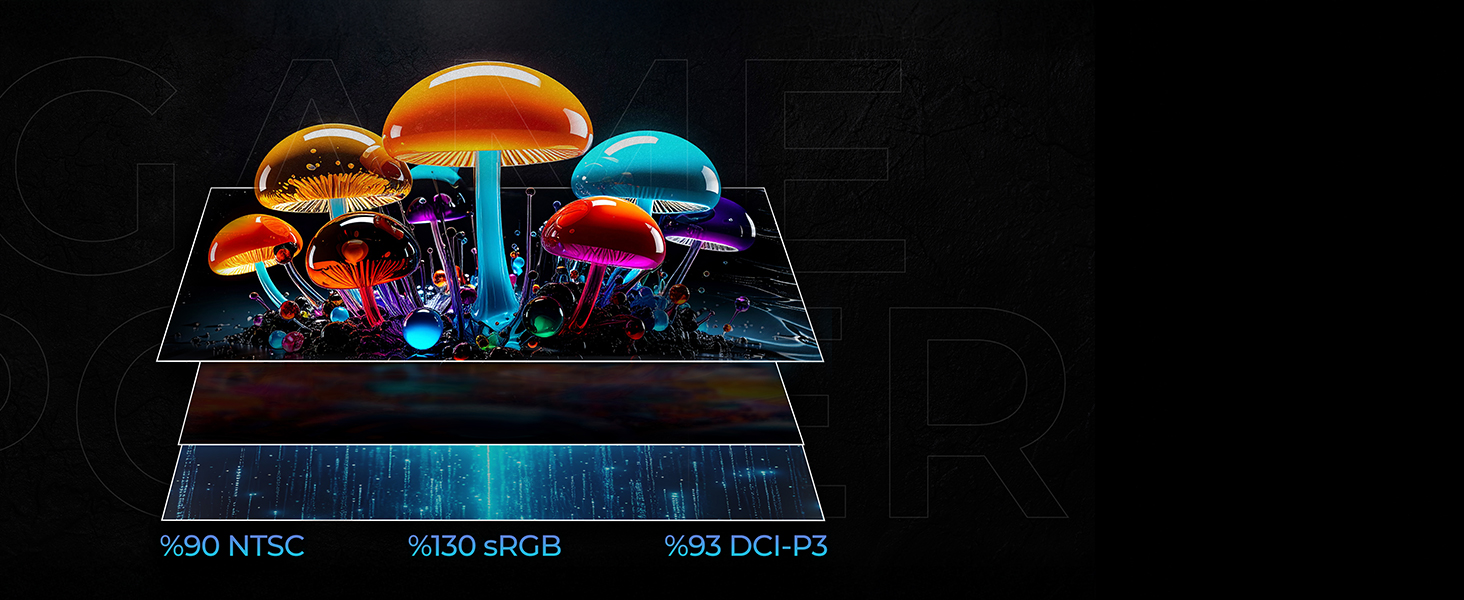 With 90% NTSC, 130% sRGB, 94% Adb. RGB, and 93% DCI-P3 support, enjoy brighter, more vibrant, and accurate colors in every scene.
