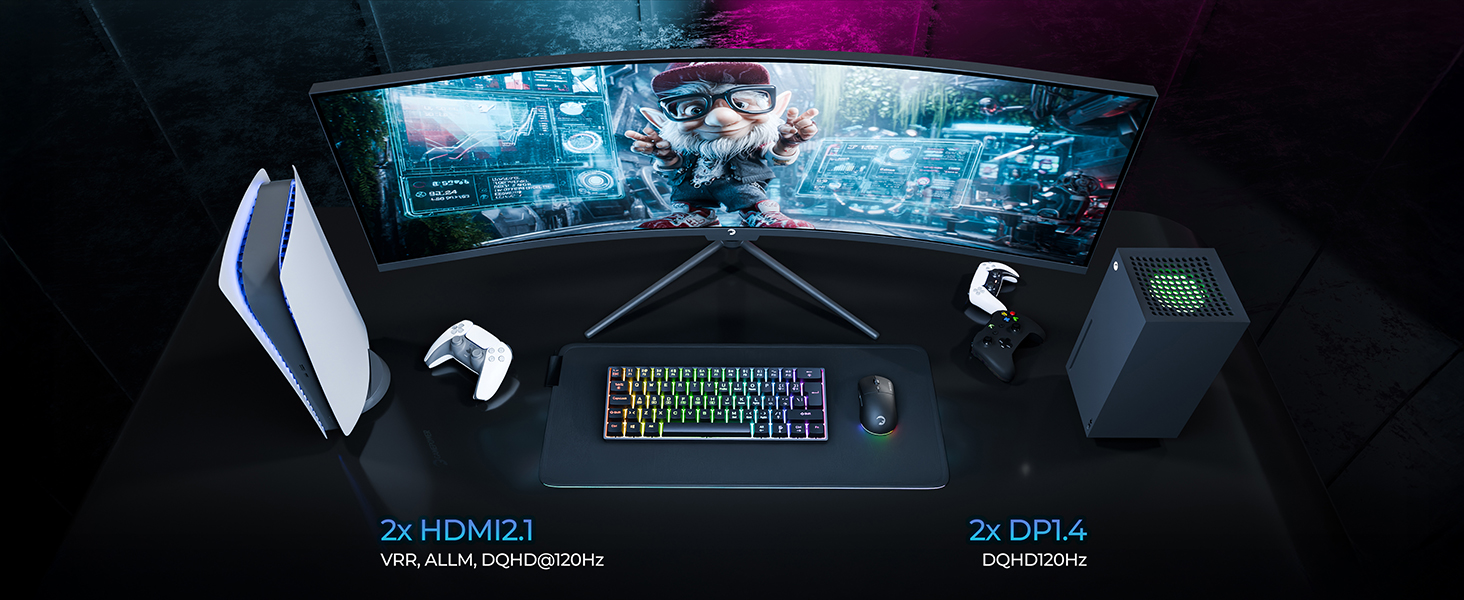 Enjoy VRR and ALLM technologies with HDMI 2.1 support, while experiencing the smooth thrill of DQHD 120Hz at the same time.